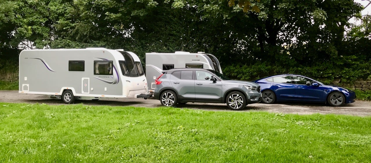 I tow my caravan with a Tesla Model X. Have taken it to Cornwall, Scotland and Norfolk from Oxfordshire with no stress.
